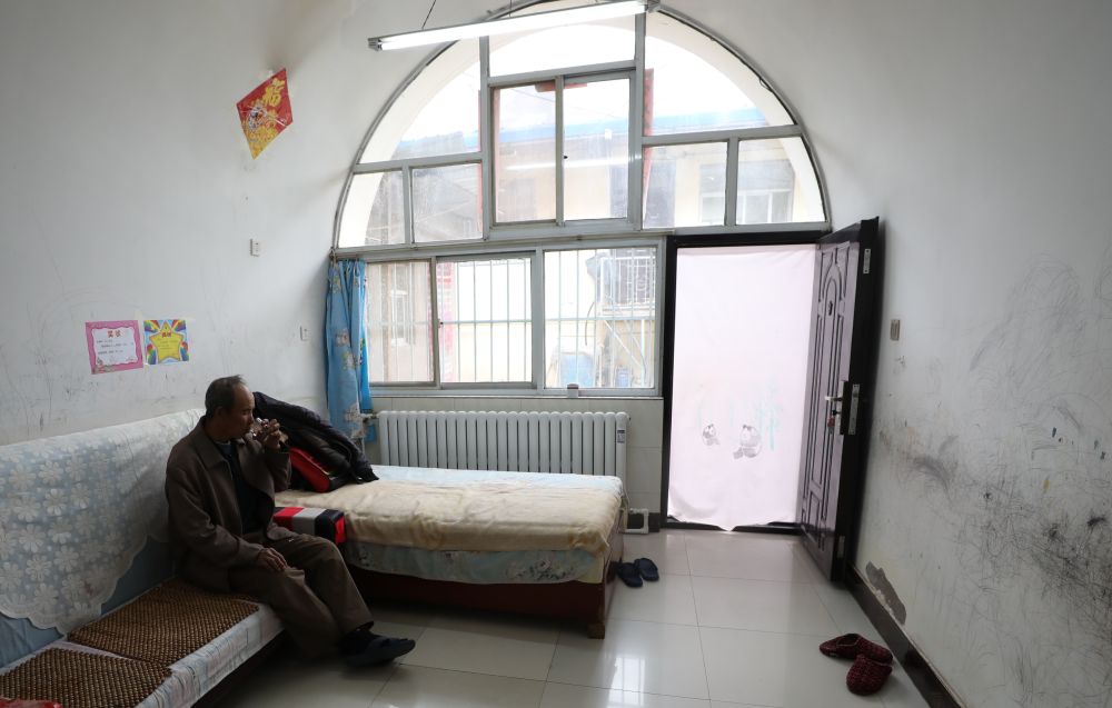 1月24日,售完蘋果后,孔家溝村民任貴平回到集中采暖窯洞休息。 新華社記者陳昌奇 攝