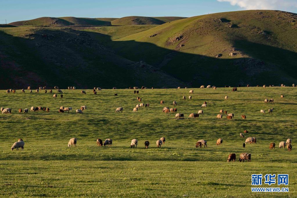 新疆裕民縣巴爾魯克山區夏牧場上的羊群(6月15日攝)。