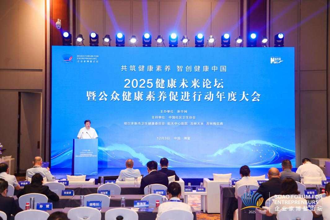 新華網博鰲12月4日電(吳起龍)12月2日至5日,2025(第十屆)企業家博鰲論壇系列活動在海南博鰲舉行。其間,由新華網主辦,中國社區衛生協會、鄂爾多斯市衛健委、航天中心醫院、吉林大米、吉林梅花鹿支持,以“共筑健康素養 智創健康中國”為主題的“2025健康未來論壇暨2025公眾健康素養促進行動年度大會”于3日下午舉辦。