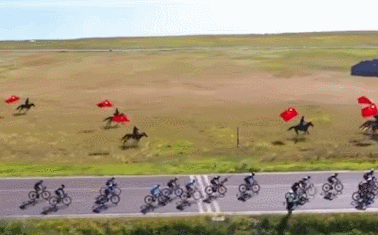 在新疆舉辦的環賽里木湖公路自行車賽中