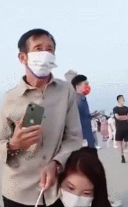 一個女孩扛著75歲父親看升旗的一幕