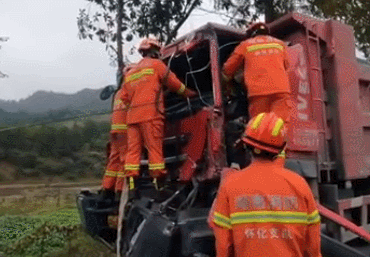 駕駛員被擠壓在駕駛室內無法動彈