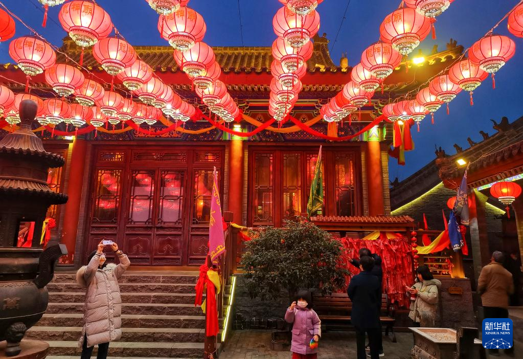 2月5日,人們在山東日照市東夷小鎮游玩。