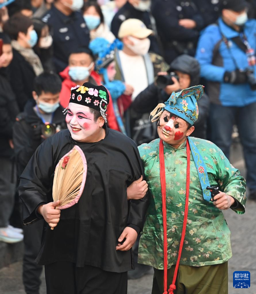 2月6日,社火團隊的演員前往廟會表演。