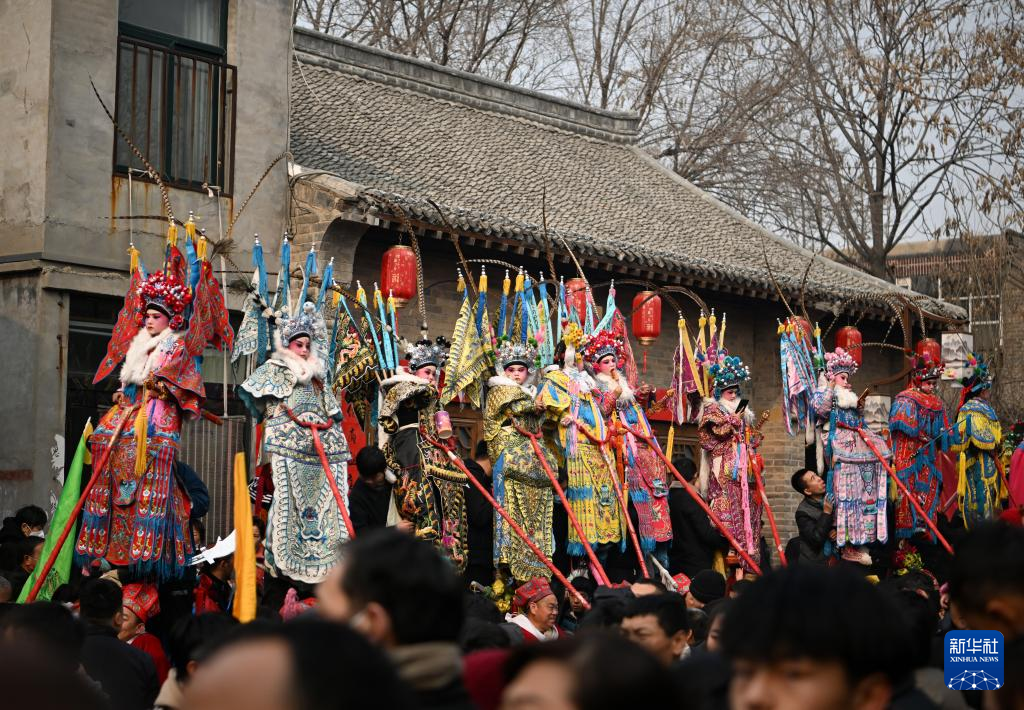 2月6日,社火團隊的演員在廟會上表演。