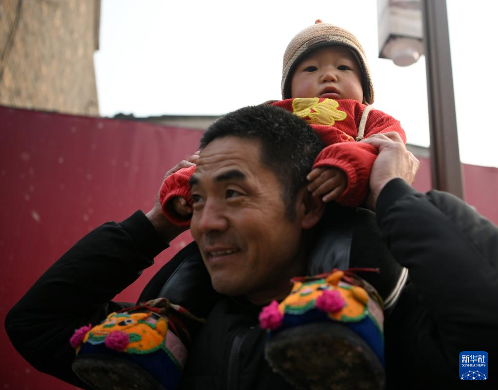 2月6日,社火團隊的小演員在表演間隙休息。