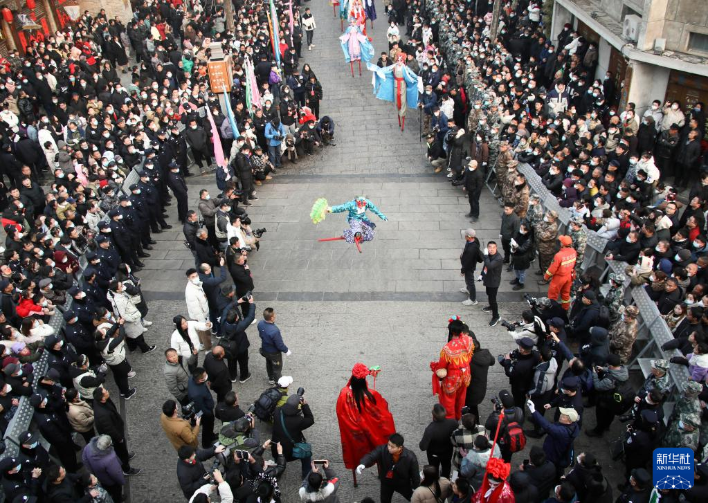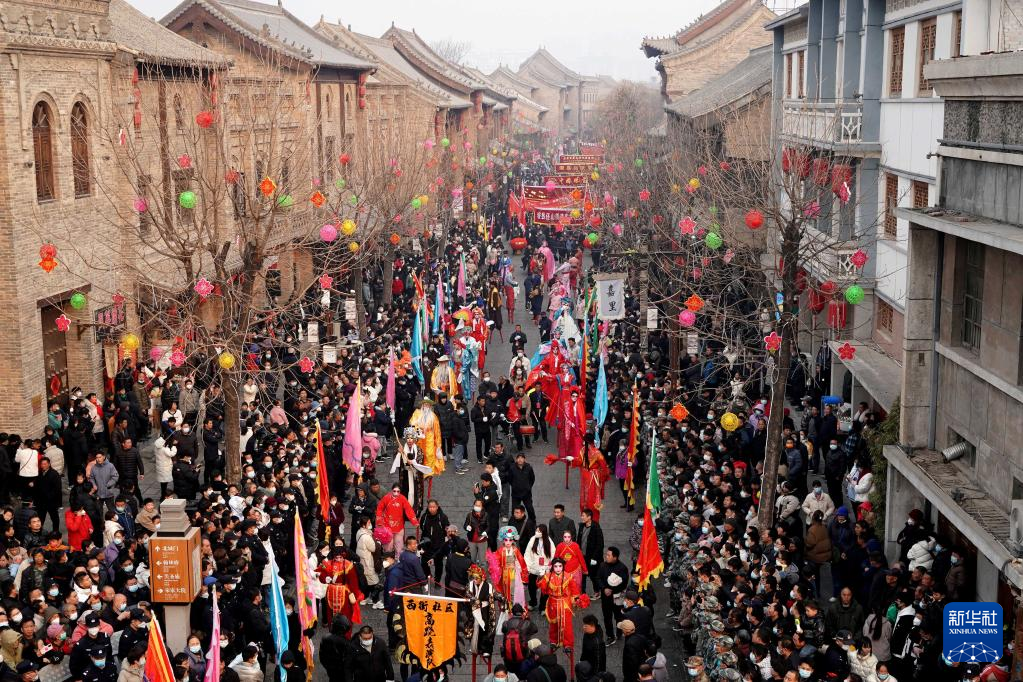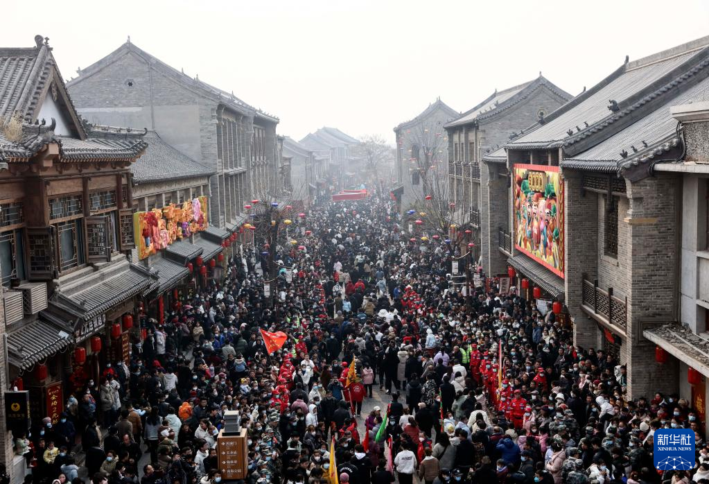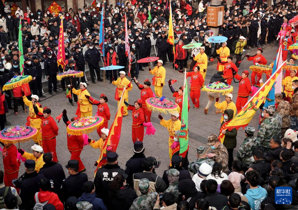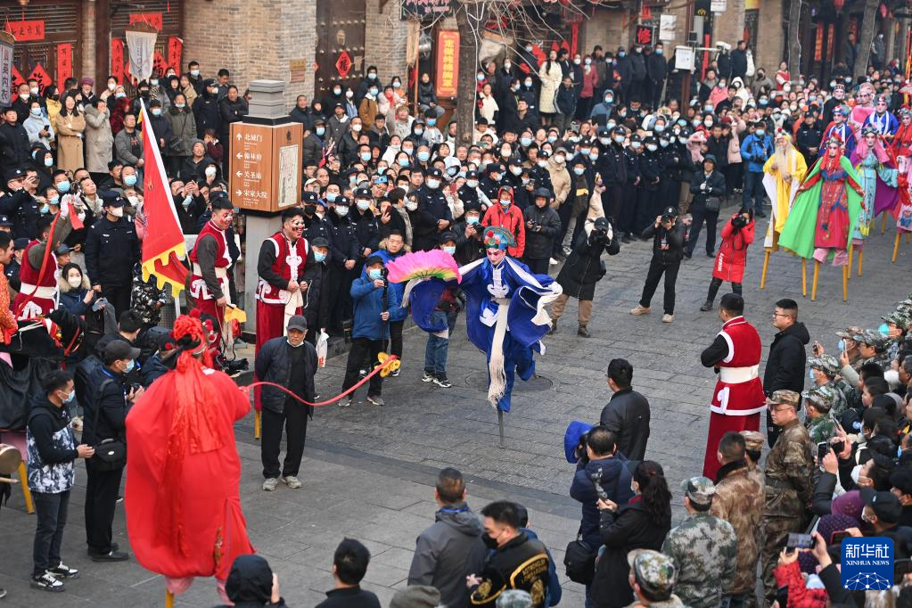 當日是農歷正月十六,在河南省??h舉行的正月古廟會上,幾十支社火團隊輪番表演,踩高蹺、扭秧歌、耍獅子,鑼鼓喧天,熱鬧非凡,形成一道富有特色的中原文化景觀。河南省??h的正月古廟會已有1600多年歷史,有“華北第一廟會”之稱,被譽為民俗文化的“活化石”,是中國民間文化保護工程項目、國家級非物質文化遺產。