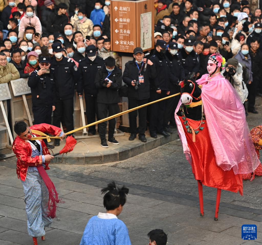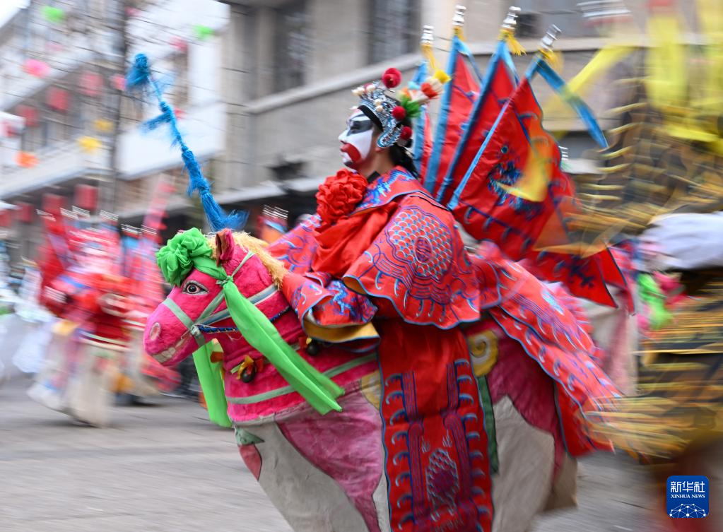 2月6日,社火團隊在行進中表演。