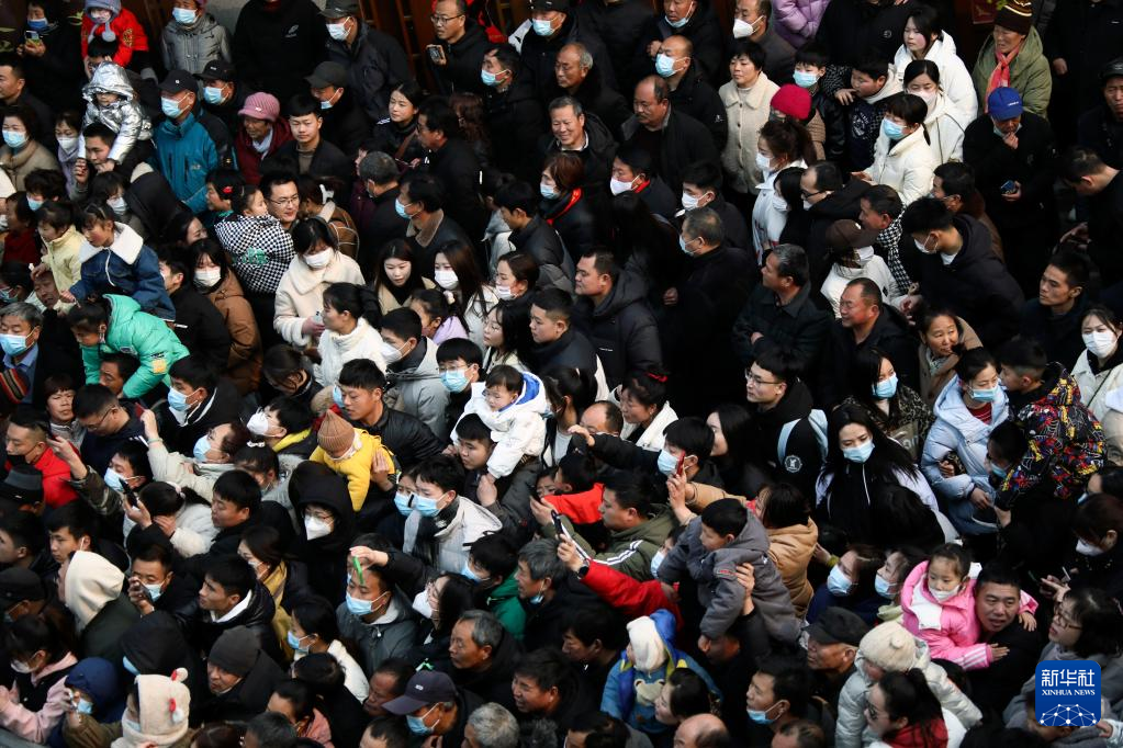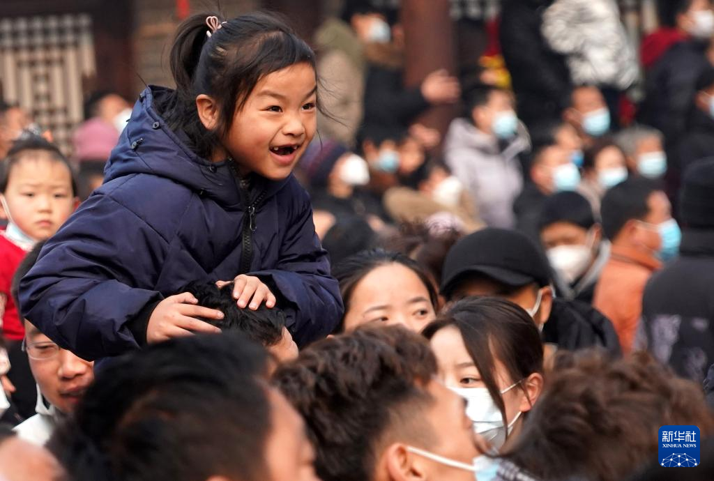 2月6日,游客在廟會上觀看表演。