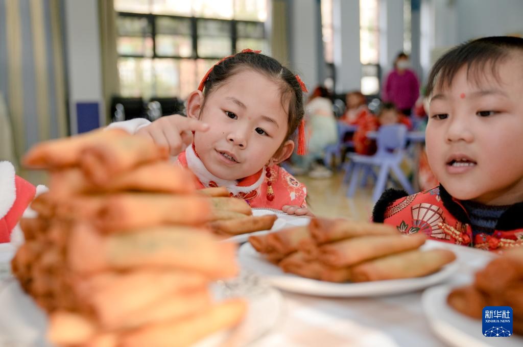 2月21日,安徽省合肥市蜀山區南崗鎮惠民新村幼兒園的小朋友們參加“吃龍鱗”活動。