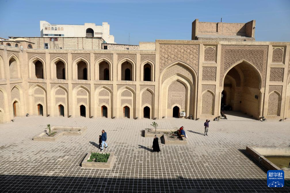 1月15日,在伊拉克巴格達,人們走在穆斯坦西里亞書院庭院內。