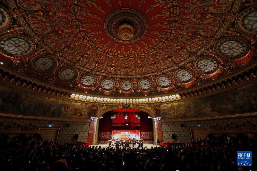 這是1月20日在羅馬尼亞首都布加勒斯特的雅典娜音樂廳拍攝的2025“歡樂春節”中國旋律專場音樂會現場。