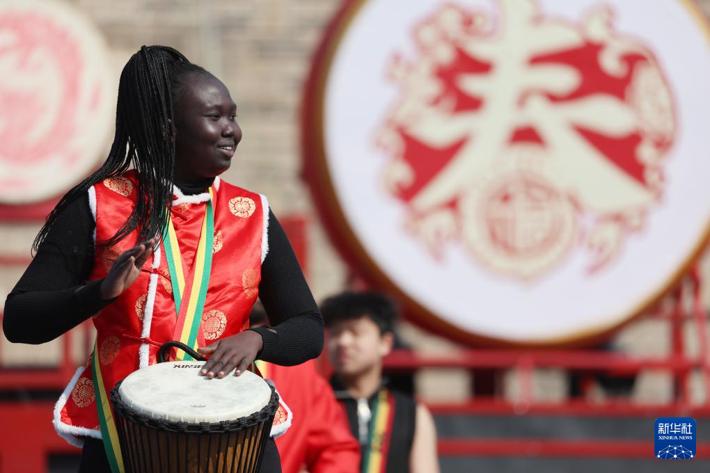 2月22日,留學生在2025年全國鼓王大會展演活動中表演非洲鼓。