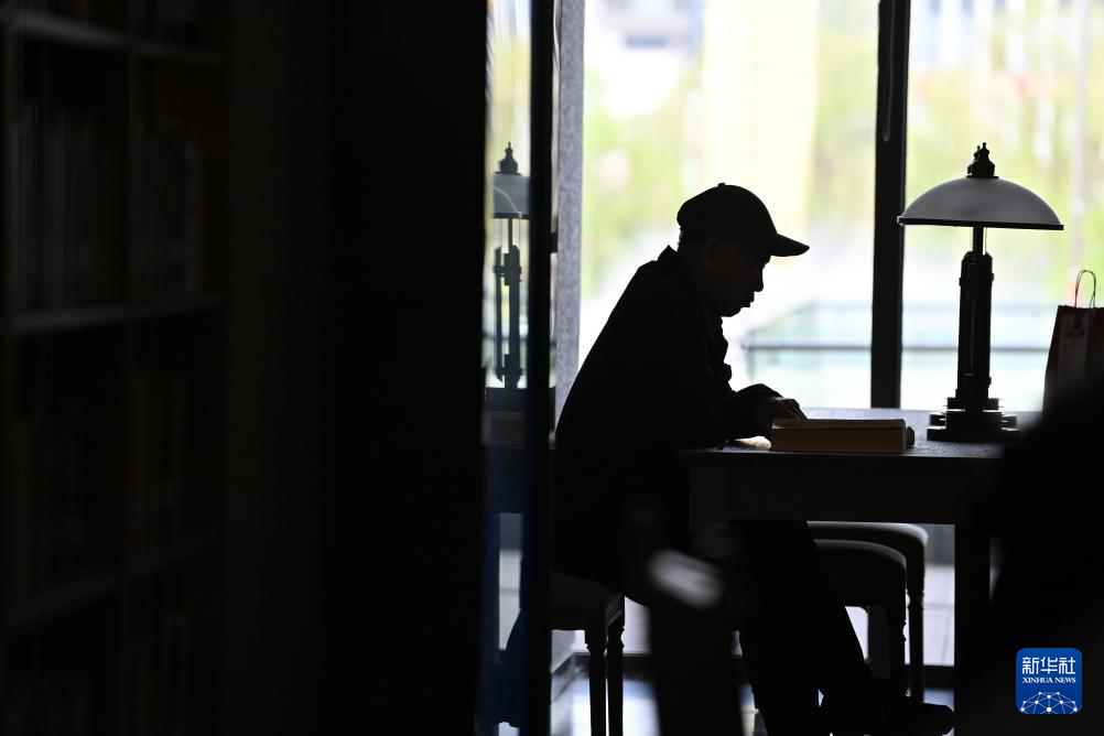 4月23日,一名市民在沈陽的時代文倉城市書房閱讀。
