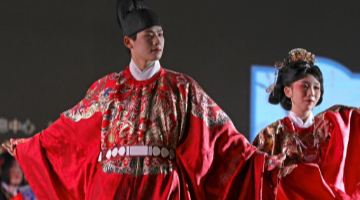 4月29日,演員在懸泉置遺址景區開園儀式上表演。