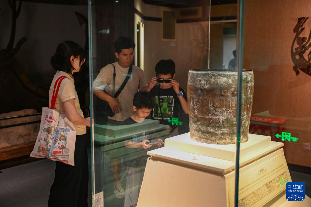5月18日,參觀者在廣州南越王博物院(王墓展區)參觀。