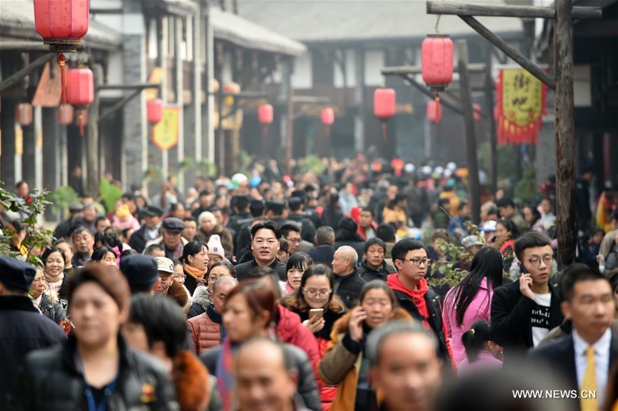 Tourists visit Antao tourist town in Chongqing, southwest China, Dec. 30, 2017. Antao tourist town featuring pottery making culture was open on Saturday at Rongchang pottery cultural and creative industrial park. (Xinhua/Tang Yi)