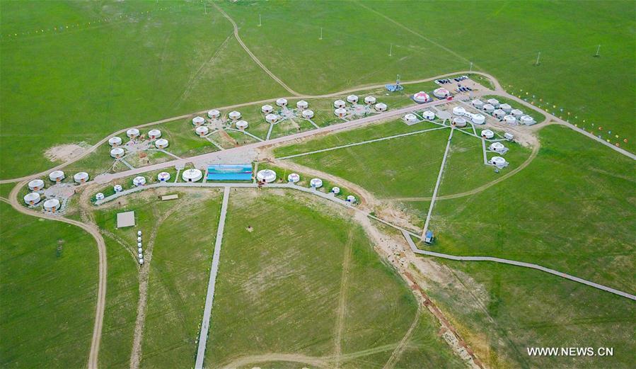 Aerial photo taken on July 21, 2017 shows roads to gers on a ranch near Xilinhot City, north China's Inner Mongolia Autonomous Region. In the past five years, China has seen 1.28 million km of rural roads built or renovated, with 99.24 percent of townships and 98.34 percent of villages connected by asphalt or cement roads. (Xinhua/Lian Zhen)