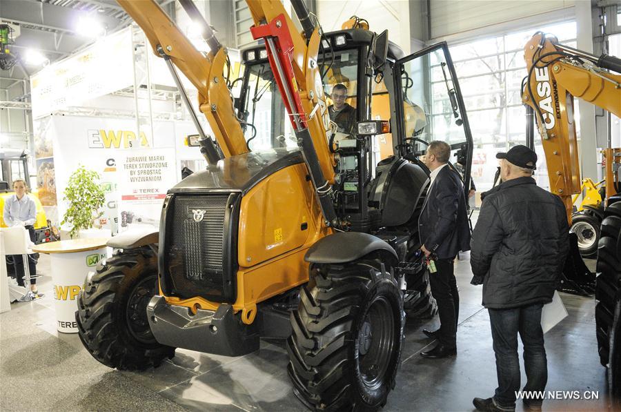 A man tries a construction vehicle during the BUDMA 2018 International Construction and Architecture Fair in Poznan, Poland, on Feb. 2, 2018. BUDMA International Construction and Architecture Fair is one of the most important meeting places for producers and distributors of modern technologies and building materials with trade representatives, architects, contractors and investors. BUDMA 2018 International Construction and Architecture Fair was held in Poznan from Jan. 30 to Feb. 2. (Xinhua/Jaap Arriens)