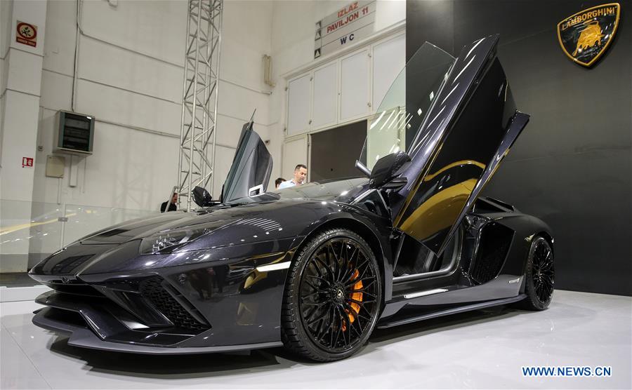 Photo taken on April 10, 2018 shows a Lamborghini Aventador at Zagreb Auto Show in Zagreb, capital of Croatia, on April 10, 2018. Zagreb Auto Show is open to public from April 11 to April 15. (Xinhua/Petar Glebov)