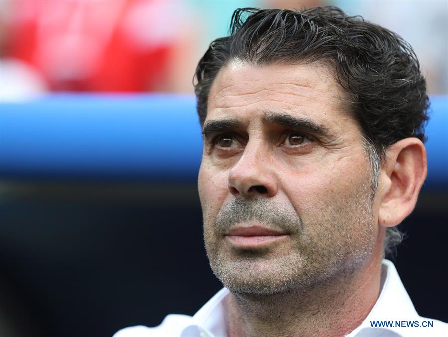 Head coach Fernando Hierro of Spain is seen during the 2018 FIFA World Cup round of 16 match between Spain and Russia in Moscow, Russia, July 1, 2018. (Xinhua/Yang Lei)