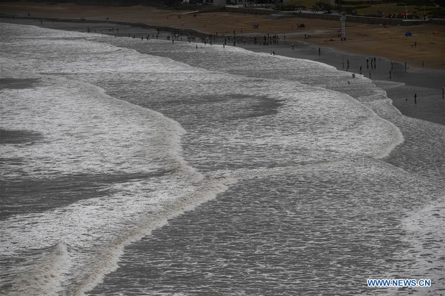 Waves are seen on a beach before the landing of the typhoon Ampil in Zhujiajian resort of Zhoushan City, east China's Zhejiang Province, July 21, 2018. Ampil, the tenth typhoon this year, is expected to make landfall Sunday morning in the country's eastern coast, bringing gales and downpours, the national observatory said Saturday. (Xinhua/Xu Yu)