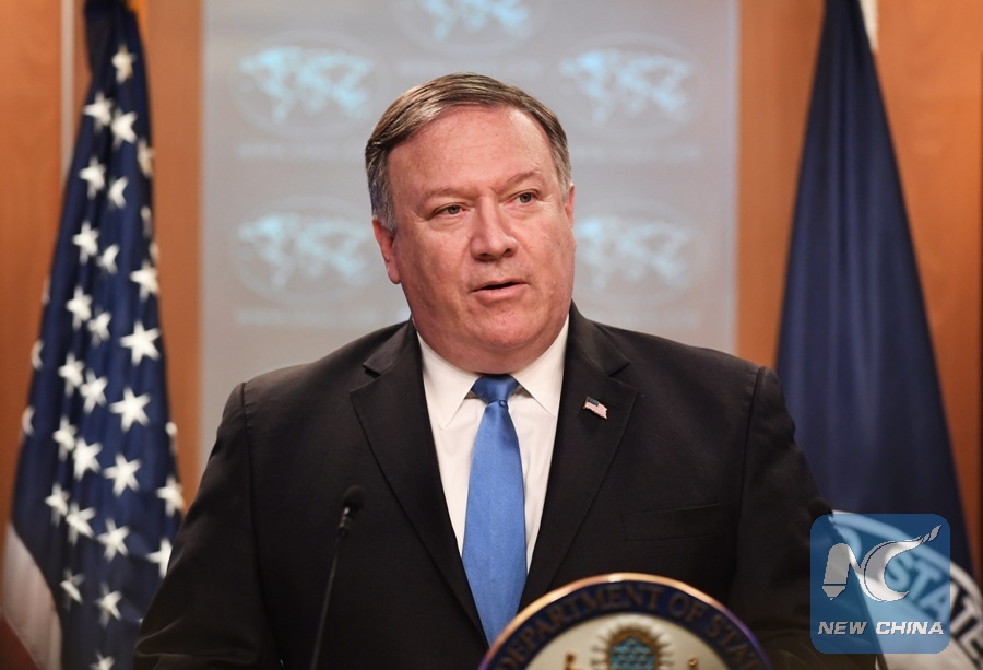 U.S. Secretary of State Mike Pompeo speaks during a press briefing in Washington D.C., the United States, Aug. 16, 2018. (Xinhua/Liu Jie)