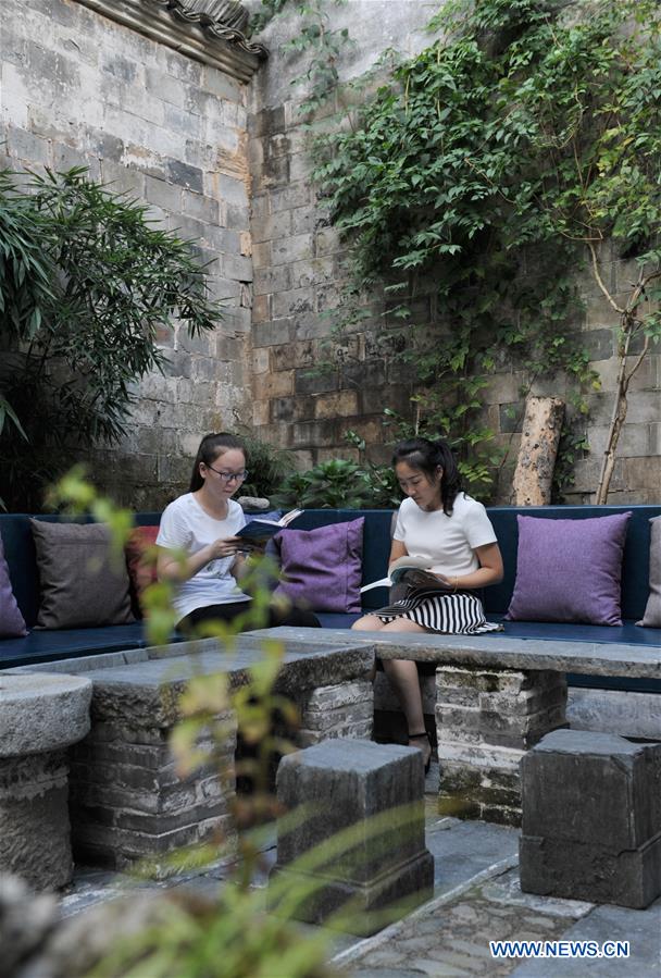 Tourists relax in a guesthouse renovated from an ancient building in Nanping Village of Yixian County, Huangshan, east China's Anhui Province, on Sept. 18, 2018. Over the years, increasing efforts have been made by authorities of Yixian County to protect and restore the local ancient communities and their classical architecture. (Xinhua/Qi Wenjuan)