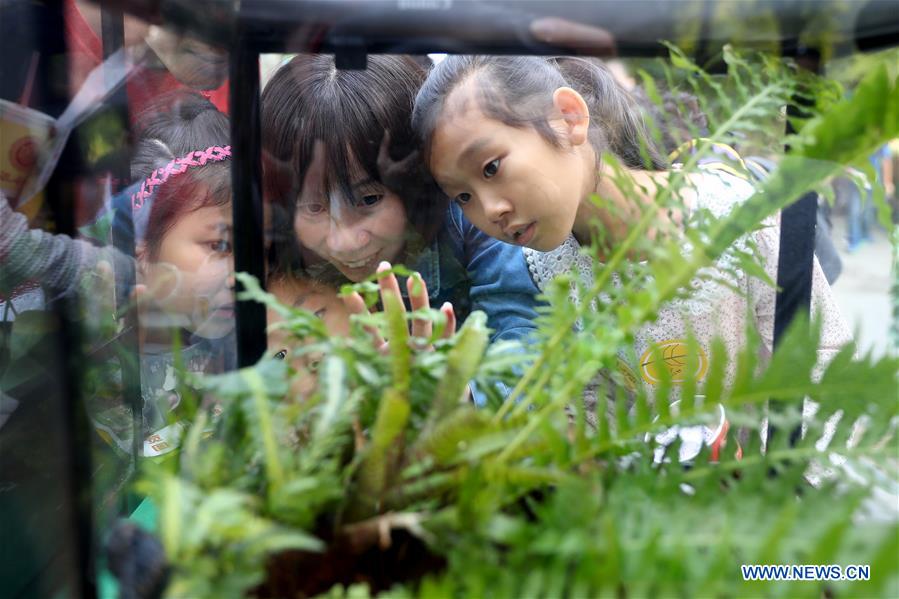 Visitors view insects at the first International Insect Art Science Fair at China National Chirldren's Center in Beijing, capital of China, Oct. 5, 2018. About 35,000 insects covering over 1,000 species are displayed during the fair. (Xinhua/Zhang Yuwei)