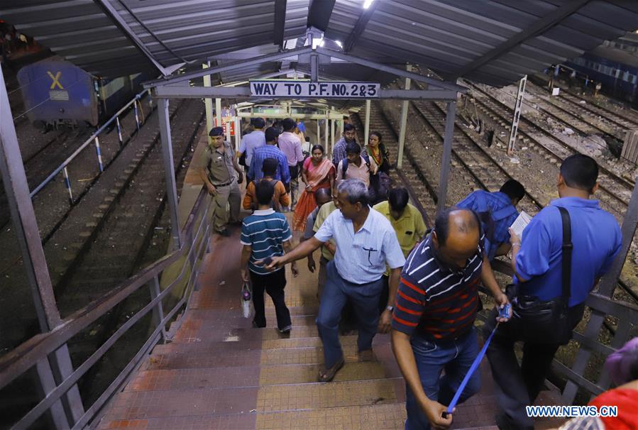 Police and officials inspect the Santragachi railway station in India's eastern city of Kolkata on Oct. 23, 2018. At least two people died and around 14 were injured when a stampede took place at the Santragachi railway station on Tuesday evening. (Xinhua/Stringer)