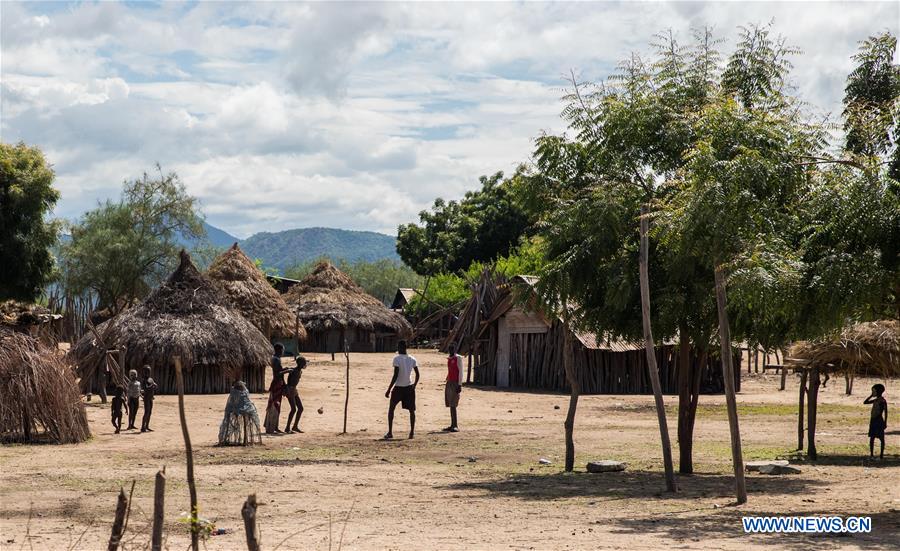 Karo villagers play with one another in front of their houses near the Omo River in Southern Regional State, Ethiopia, Oct. 27, 2018. Karo people were famous for their artistic ornamental body painting. According to the local residents, male Karo villagers paint all of their bodies while the female only paint their faces with the natural materials grounded by stones nearby. (Xinhua/Lyu Shuai)