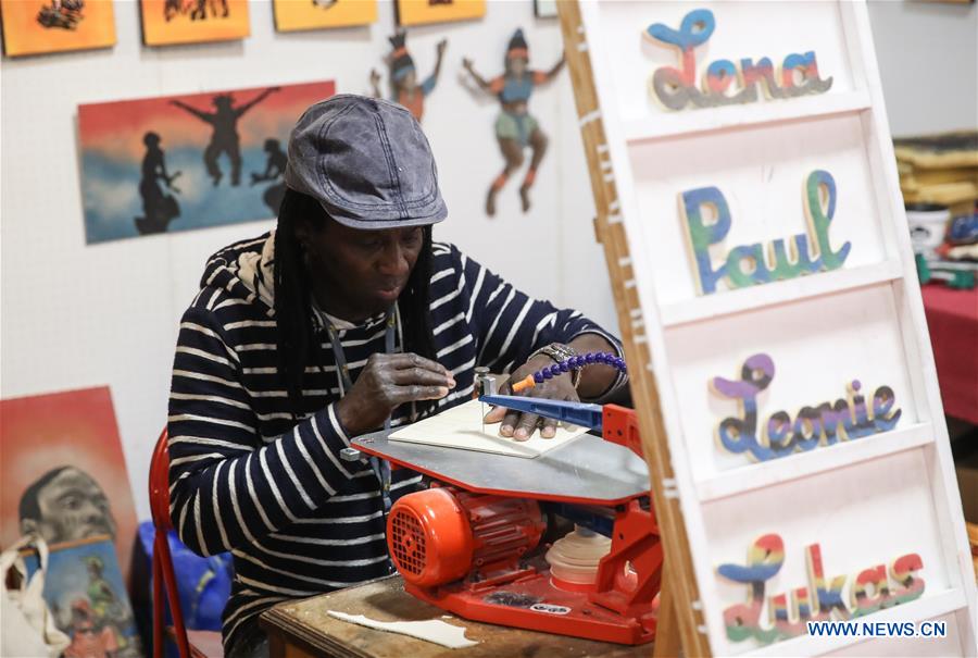 An artist makes an artwork at the Bazaar Berlin 2018 in Berlin, capital of Germany, on Nov. 7, 2018. Bazaar Berlin, the international sales fair for handicrafts, design and natural products, kicked off on Wednesday, attracting around 500 manufacturers and retailers from across the world. The fair will last until Nov. 11. (Xinhua/Shan Yuqi)