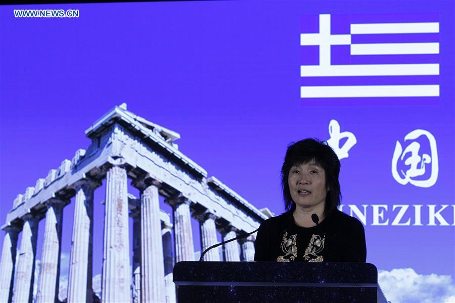 ?Chinese ambassador to Greece, Zhang Qiyue addresses the Chinese Night Cultural Event at the Stavros Niarchos Foundation Cultural Center in Athens, Greece, on Nov. 8, 2018.The event is organized by the Municipality of Beijing and the Chinese embassy in Greece on the occasion of the 36th Athens Marathon that will take place on Nov. 11, 2018. (Xinhua/Marios Lolos)