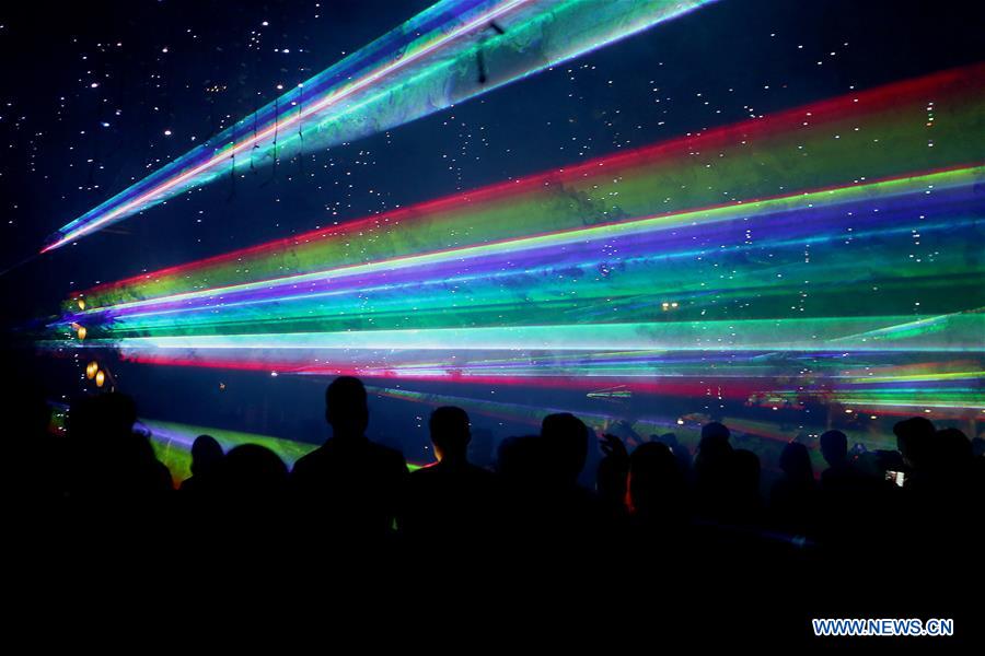 People watch a Christmas-themed light show at a park in Makati City, the Philippines, Dec. 8, 2018. (Xinhua/Rouelle Umali)