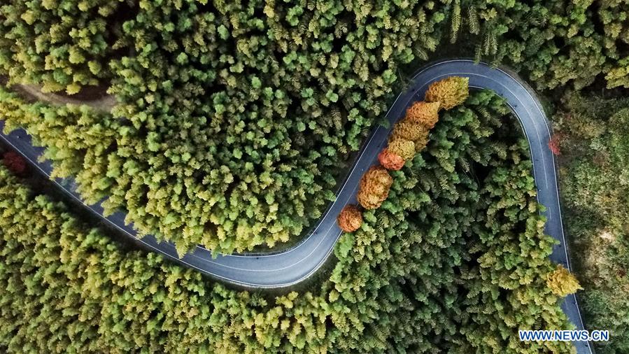 Contestants compete in a marathon in Huangshan, east China's Anhui Province, Oct. 28, 2018. The living and working scenes of Chinese people in the past year have created a series of amazing views, some of which formed geometric figures. Those photos tell the development and progress of the country in 2018. (Xinhua/Zhang Duan)