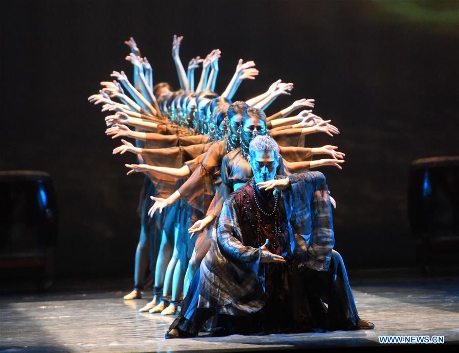 Artists perform during the grand holographic dance show "Arirang: Song of the Earth" in Lanzhou, northwest China's Gansu Province, Jan. 9, 2019. The show was jointly staged by Chinese and South Korean artists. (Xinhua/Fan Peishen)