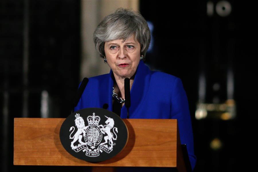 British Prime Minister Theresa May makes a statement outside 10 Downing street, in London, Britain on Jan. 16, 2019. The British government survived a no-confidence vote at the parliament on Wednesday, one day after it suffered a record-breaking Brexit deal vote defeat. (Xinhua/Tim Ireland)