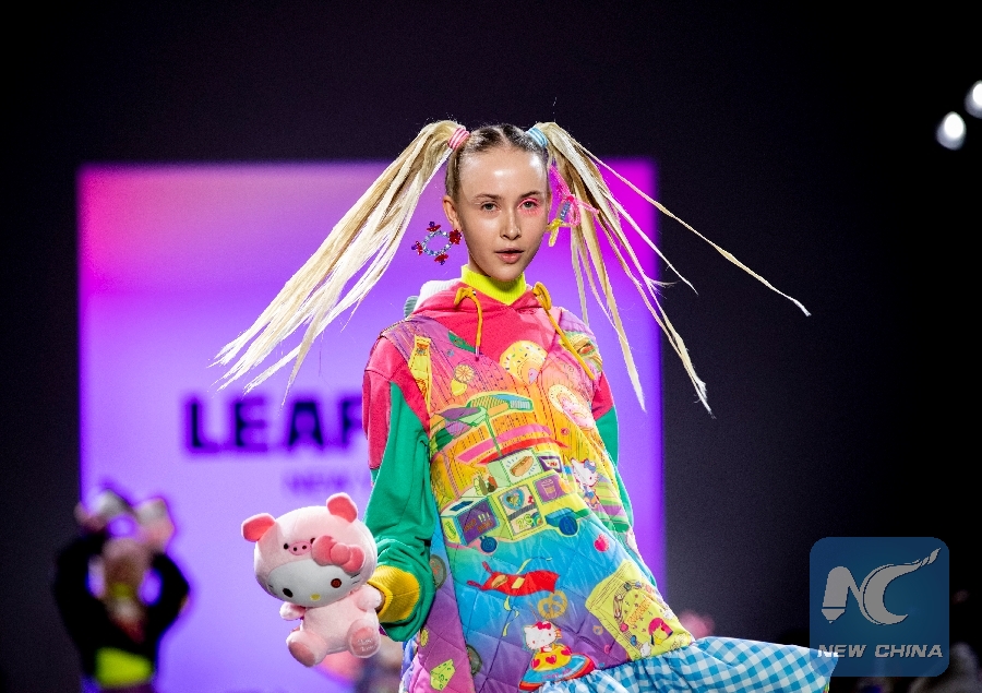 A model presents a creation of LEAF XIA Fall/Winter 2019 collection during the New York Fashion Week in New York, the United States, on Feb. 13, 2019. (Xinhua/Wang Ying)
