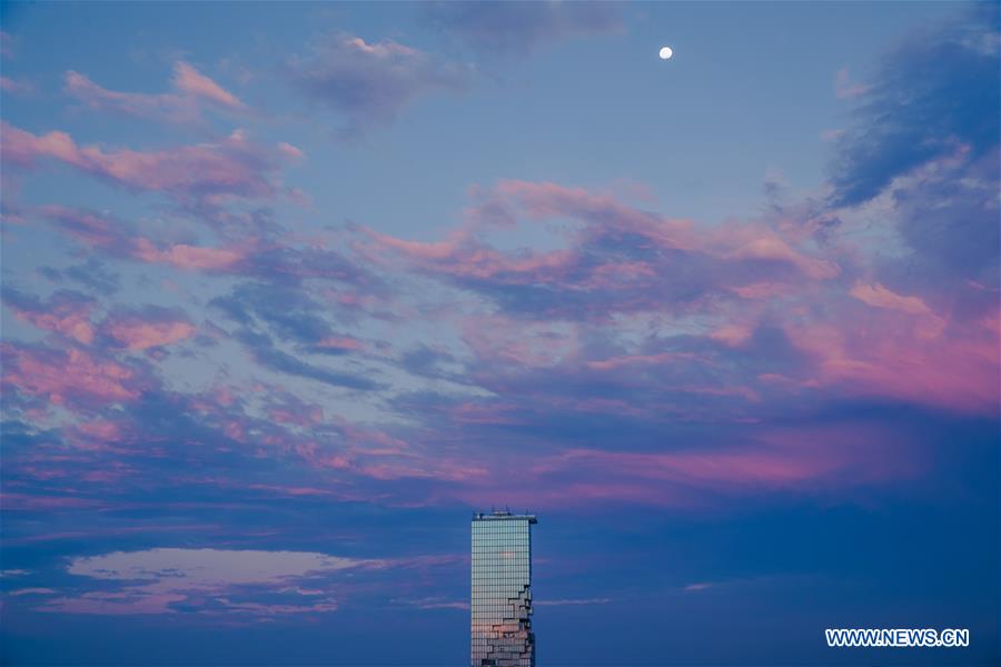 The photo shows King Power MahaNakhon skyscraper under a clear sky after rainfall in Bangkok, Thailand, Feb. 17, 2019. The rainfall helped to improve the air quality in Bangkok. (Xinhua/Zhang Keren)