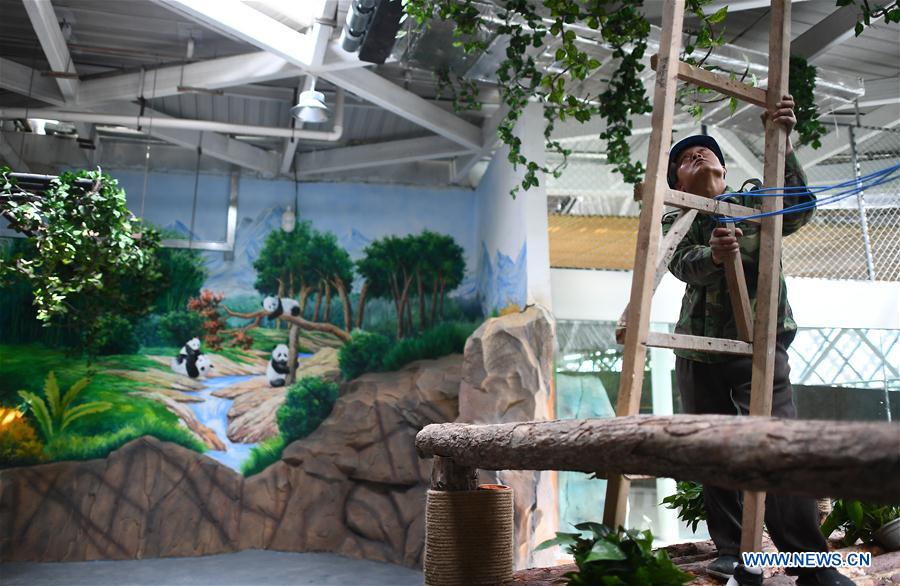 A worker is seen at a construction site of the Panda House in a wildlife park in Xining, northwest China's Qinghai Province, May 1, 2019. People from various sectors stick to their posts during the Labor Day holiday. (Xinhua/Zhang Hongxiang)