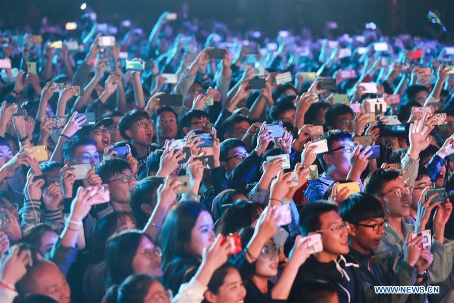Music enthusiasts are seen in Jimo ancient town during a folk song festival in Qingdao City, east China's Shandong Province, May 1, 2019. The folk song festival opened on May 1 and runs until August 31. More than 30 groups of musicians from at home and abroad will participate in a series of musical activities. (Xinhua/Ning Youpeng)