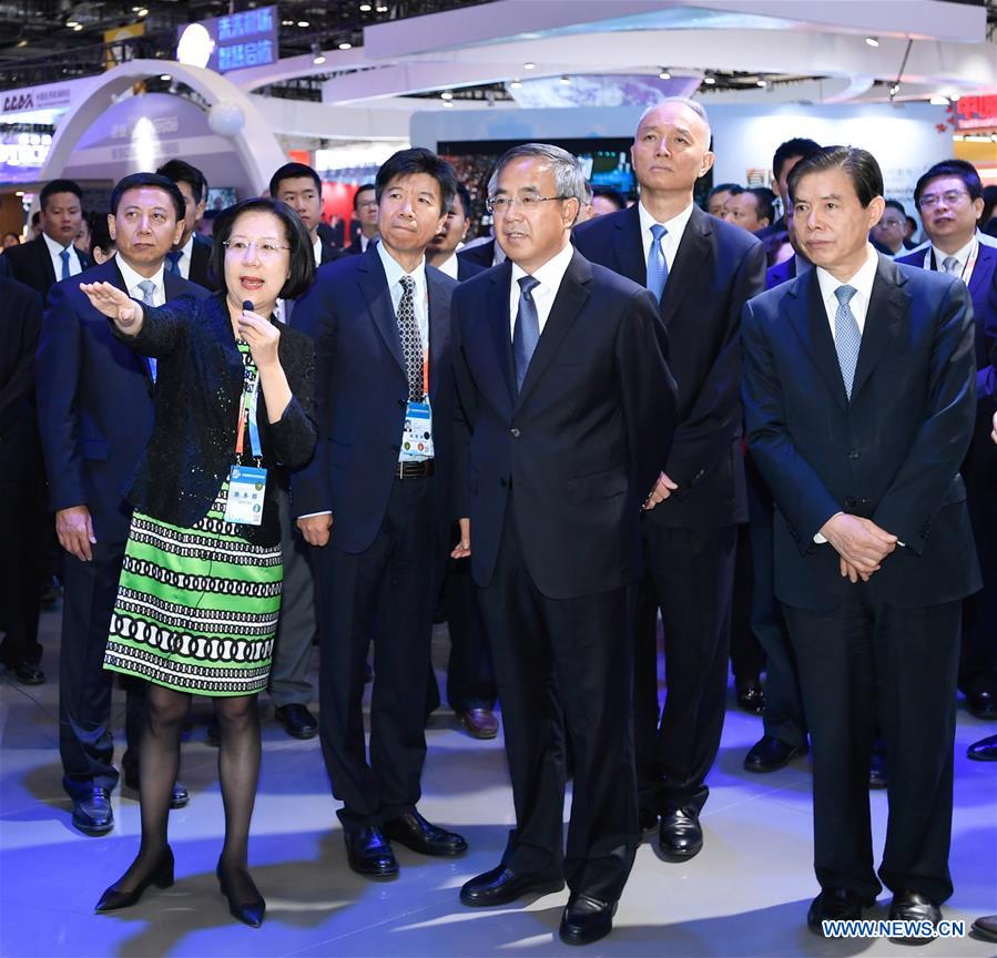 Chinese Vice Premier Hu Chunhua, also a member of the Political Bureau of the Communist Party of China (CPC) Central Committee, visits the 2019 China International Fair for Trade in Services (CIFTIS) in Beijing, capital of China, May 28, 2019. (Xinhua/Shen Hong)