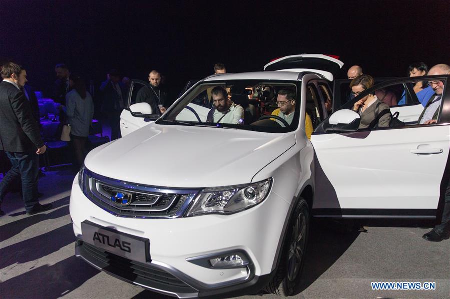 China's Geely unveils the SUV Atlas in Moscow, Russia, on Feb. 27, 2018. (Xinhua/Bai Xueqi)