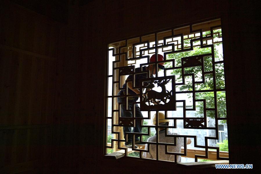 Builders work at a five-storey Tusilou, a kind of stilted building, in Xuan'en County of Enshi Tujia and Miao Autonomous Prefecture, central China's Hubei Province, June 22, 2019. The building under construction is a 38.5-meter-high wooden stilted house of the Tujia ethnic group. (Xinhua/Song Wen)