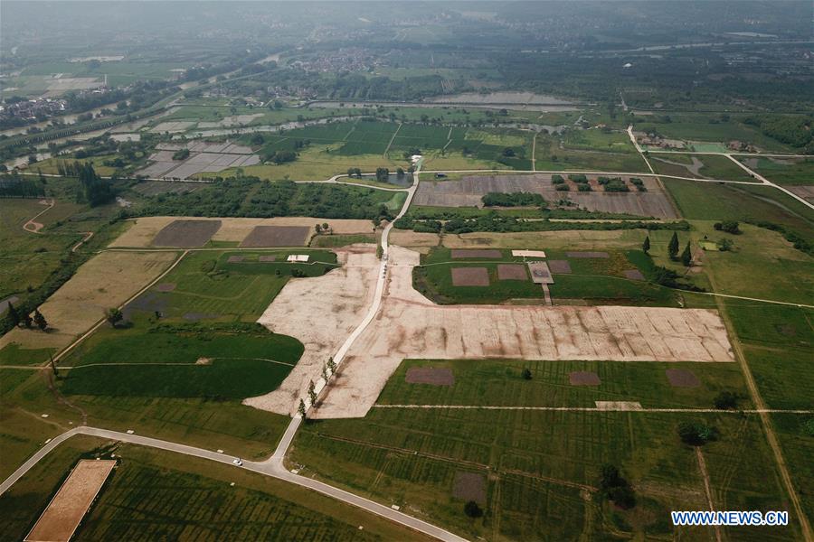 Aerial photo taken on June 23, 2019 shows a view of Liangzhu relic site in Hangzhou, east China's Zhejiang Province. China's Archaeological Ruins of Liangzhu City was on Saturday inscribed to the UNESCO World Heritage List as a cultural site, bringing the total number of the Asian country's sites on the list to 55. (Xinhua/Huang Zongzhi)