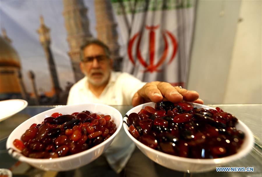 A seller showcases gemstones during the Beirut Shopping Festival 2019 in Beirut, Lebanon, on Aug. 18, 2019. (Photo by Bilal Jawich/Xinhua)
