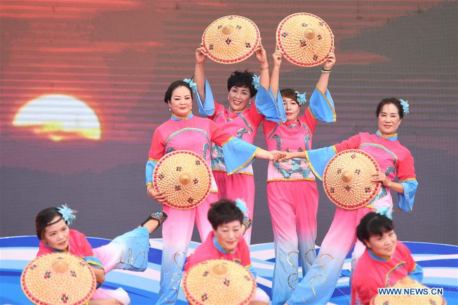 Villagers perform during a celebration marking the launching of a fishing season at Tongzhao Village in Fenghua District of Ningbo City, east China's Zhejiang Province, Sept. 15, 2019. A celebration marking the launching of a fishing season was held here to pray for good luck. The annual summer fishing ban on the East China Sea will end on Sept. 16. (Xinhua/Huang Zongzhi)