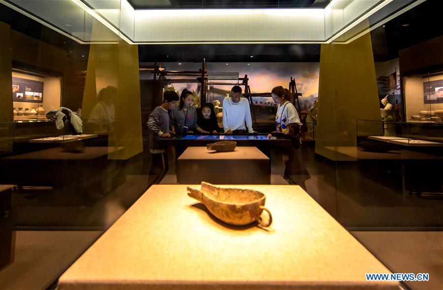 Tourists visit a museum in Wu'an, north China's Hebei Province, Oct. 4, 2019. Many people in Wu'an choose to visit the museum during the National Day holiday. (Xinhua/Wang Xiao)