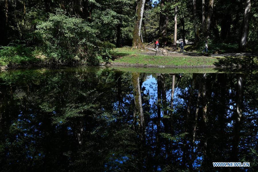 Tourists go sightseeing in the forest of Ali Mountain in Taiwan, southeast China, Oct. 7, 2019. (Xinhua/Chen Bin)