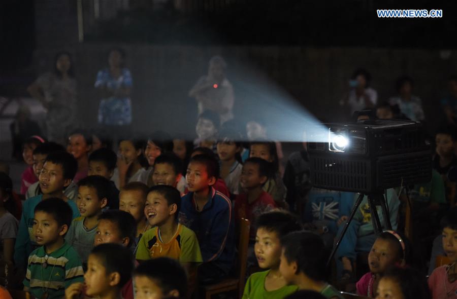 Students watch film at Nongyong Primary School in Nongyong Village of Bansheng Township, Dahua Yao Autonomous County, south China's Guangxi Zhuang Autonomous Region, May 13, 2015. Local government in recent years carried out many measures for the poverty alleviation work, and invested more than 5 million yuan (about 713,970 U.S. dollars) to transform and expand Nongyong Primary School. Besides the new teaching building, dormitory building, canteen and toilets, lots of advanced facilities including multimedia classroom, vocal music room, library and distance teaching system have also been accessible to the students. To further improve the teaching facilities, the school also planned to expand the campus area with the construction of new teaching building and playground. (Xinhua/Huang Xiaobang)